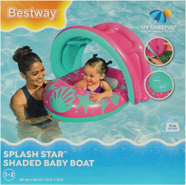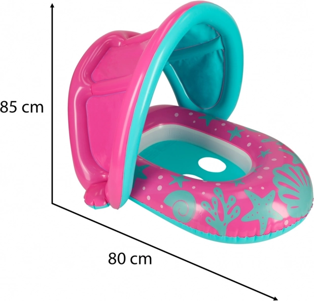 Der rosa-blaue Schwimmsitz für Kinder mit Überdachung ist eine hervorragende Wahl für Kleinkinder, die gerade erst ans Wasser gewöhnt werden. Die aufblasbare Überdachung spendet Schatten und hilft, empfindliche Haut vor der Sonne zu schützen; sie kann bei Bedarf leicht abgenommen werden. Beinöffnungen und der geformte Sitz geben Sicherheit und Komfort, damit Ihr Kind unbeschwerten Wasserspaß genießen kann.