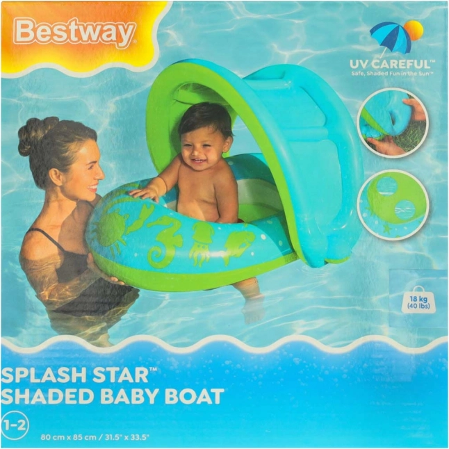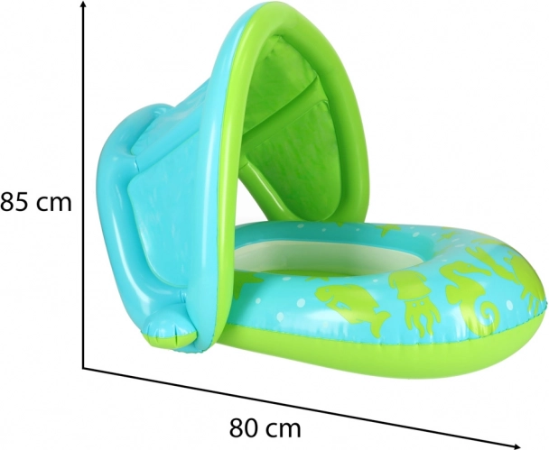 Genießen Sie unbeschwerte Sommer-Wasserspiele mit Sicherheit und Ruhe. Der Kinder-Schwimmsessel mit abnehmbarem, aufblasbarem Baldachin schützt die empfindliche Kinderhaut vor Sonnenstrahlen und bietet angenehmen Schatten im Pool und am Meer.