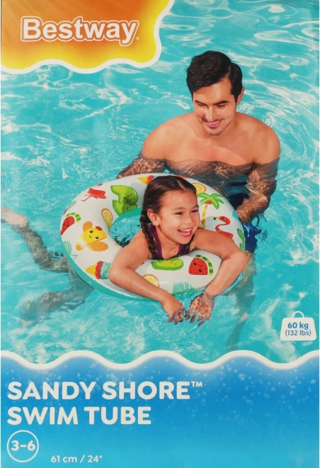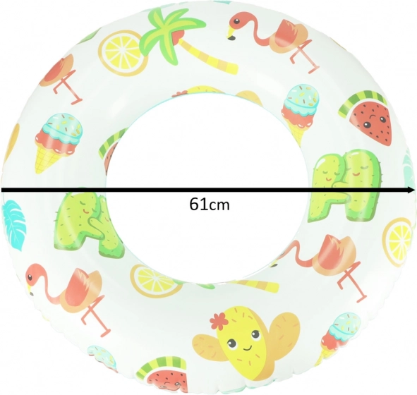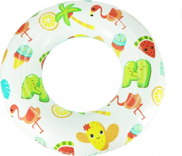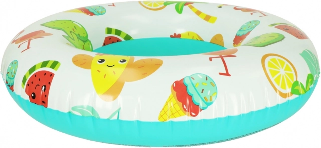 Der fröhliche aufblasbare Schwimmring BESTWAY mit 61 cm Durchmesser begeistert Kinder mit buntem Flamingo-, Früchte- und Eiscreme-Print. Er bietet eine hervorragende Auftriebshilfe, besteht aus robustem PVC und verfügt über ein Sicherheitsventil gegen Luftverlust – ideal für Pool und Strand für Kinder von 3–6 Jahren (bis 60 kg).