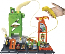 Das Hot Wheels Super Ladestation Set bietet Kindern aufregende Spielmöglichkeiten. Mit einem realistischen Ladekabel, das Funktionen wie Aufzüge und Markierungsschalter tatsächlich aktiviert, können Kinder ihre eigenen Geschichten erstellen. Diese Station hat Platz für bis zu 10 Fahrzeuge im Maßstab 1:64, eines davon ist im Lieferumfang enthalten (weitere Fahrzeuge separat erhältlich). Die Ladestation kann an weitere Hot Wheels Sets angeschlossen werden, um eine einzigartige Welt voller Abenteuer zu schaffen.
