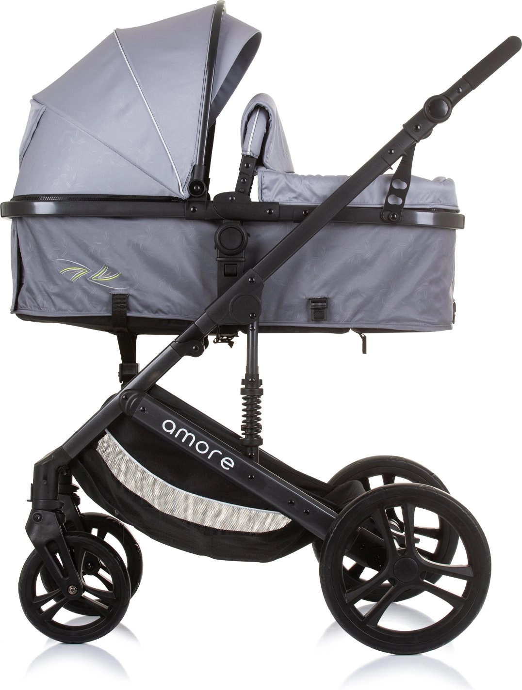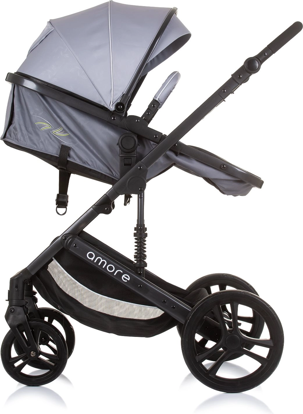 Der vielseitige Amore 2-in-1 Kinderwagen kombiniert Wanne und Sportaufsatz in einer Lösung für tägliche Spaziergänge und längere Ausflüge. Dank gefederter Rahmenkonstruktion, großer abnehmbarer Räder und höhenverstellbarer Schiebestange bietet er Komfort für Kind und Eltern. Der Sitz lässt sich in 3 Positionen einstellen und vorwärts wie rückwärts montieren.