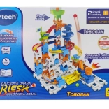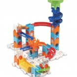 Die Kugelbahn Blitz verwandelt jeden Tag in spannende Rennen. Dank farbenfroher Teile, Spiralen und Trichter bauen Kinder dynamische Strecken, auf denen die Kugeln wie auf einer Rutschbahn hinuntersausen. Das Bauset fördert Kreativität, Logik und Feinmotorik.