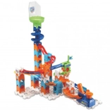 Mehrstöckige Rampen, Spiralen und Trichter sorgen für einen gleichmäßigen und schnellen Lauf der Kugeln – ideal für spannende Rennen.