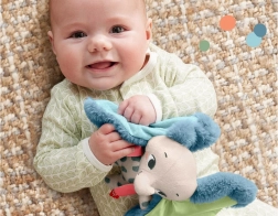 Flauschige, große Ohren und satinierte Details laden zum Drücken, Streicheln und Entdecken verschiedener Oberflächen ein – ideal zur Förderung des Tastsinns und zum Beruhigen beim Einschlafen.