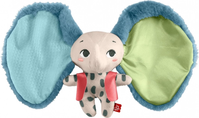 Das sensorische, kuschelige Spielzeug in Elefantenform bietet reichhaltige haptische Reize: weicher Plüsch, satinierte Details und knisternde Elemente. Kontrastierende Blau‑ und Grüntöne ziehen die Aufmerksamkeit auf sich und fördern die visuelle Entwicklung, während leicht zu greifende Formen die Feinmotorik und die Hand‑Augen‑Koordination trainieren.