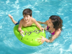 Das aufblasbare Schwimmbrett der Marke BESTWAY ist ein großartiger Helfer für Kinder, die schwimmen lernen oder im Wasser sicherer spielen möchten. Geringes Gewicht, robustes PVC und zwei stabile Griffe sorgen für hervorragende Stabilität auf der Wasseroberfläche und eine einfache Handhabung.