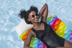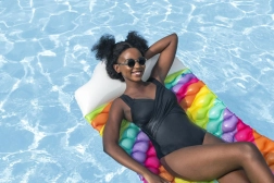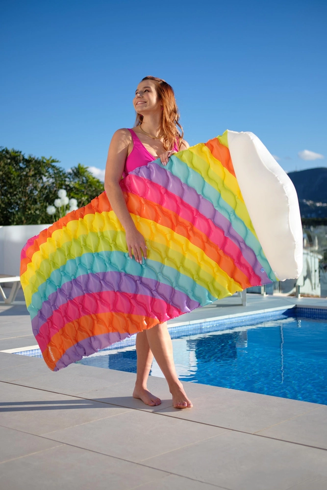 Die aufblasbare BESTWAY-Liege im Regenbogenlook ist die ideale Wahl für entspannte Stunden auf dem Wasser. Dank hochwertigem PVC ist sie beständig gegen Beschädigungen und Sonneneinstrahlung, und die mehreren Luftkammern sorgen für hohe Stabilität auf der Oberfläche. Das integrierte Kissen stützt den Kopf und ermöglicht bequemes Sonnenbaden und längere Erholung.