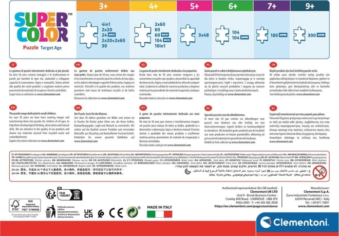 Puzzle Super Color Hot Wheels von Clementoni bietet Kindern aufregenden Spaß beim Zusammensetzen faszinierender Bilder mit lebendigen und glänzenden Farben.