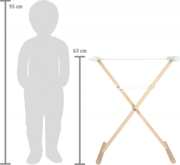 Eine stabile Konstruktion mit Sicherheitsstange gewährleistet, dass der Wäscheständer auch bei intensivem Spiel stabil bleibt. Der feine Farbton des Naturholzes verleiht ihm einen zauberhaften Look, der zu jeder Innenausstattung passt. Nach dem Spiel lässt sich der Wäscheständer leicht zusammenklappen, was Platz spart.
