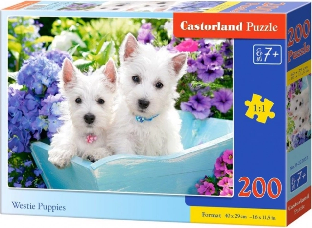 Entdecken Sie den Zauber des Puzzelns mit dem charmanten Motiv der Westie-Welpen. Dank der 200 Teile ist dieses Puzzle ideal für Kinder und Einsteiger. Das fertige Bild mit den Maßen 40 × 29 cm eignet sich perfekt zum Einrahmen oder als Dekoration fürs Kinderzimmer.