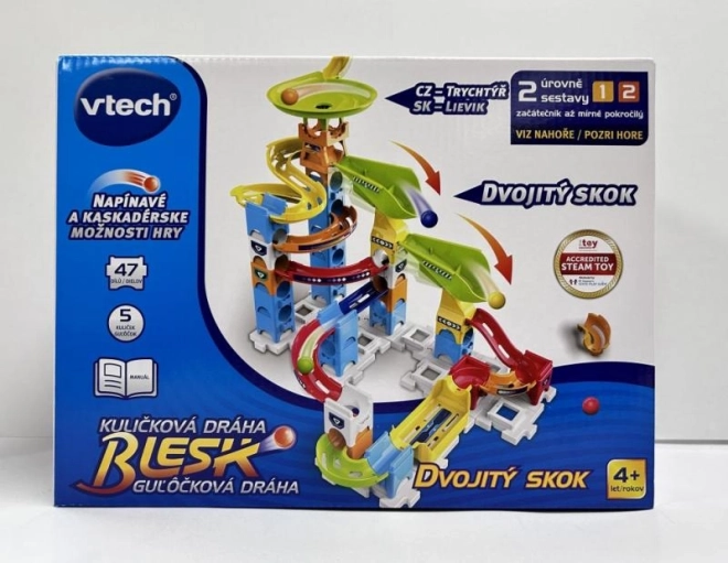 Die Blitz Murmelbahn ist ideal für diejenigen, die ihre Kreativität und logisches Denken einsetzen möchten. Sie enthält 47 Teile und 5 Murmeln, was kontinuierliche Anpassung und Kombination mit anderen Murmelbahnen ermöglicht. Die farbige Anleitung führt Sie durch verschiedene Möglichkeiten, Ihre eigene Bahn zu bauen und Freunde sowie Familie zu einem Rennen und Wettkampf herauszufordern.