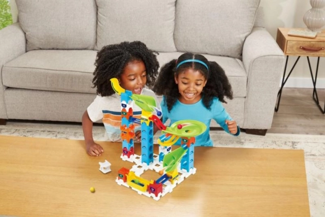 Das Set enthält genug Teile, damit Kinder ihre Murmelbahn ständig umgestalten und erweitern können.