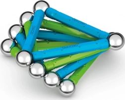 Magnetstäbchen und Metallkugeln sorgen für feste Verbindungen, die Kinder leicht auf- und abbauen können. Die Konstruktionen behalten ihre Form und fördern die Feinmotorik.