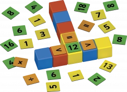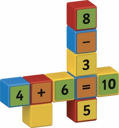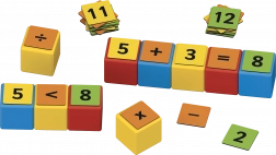 Beidseitige Clips mit Zahlen und Zeichen ermöglichen einfache bis komplexere Aufgaben. Kinder trainieren ganz natürlich Addition, Subtraktion und Grundzüge der Multiplikation.