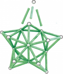 GEOMAG Glow bietet unterhaltsames und lehrreiches Bauen mit eindrucksvollem phosphoreszierendem Leuchteffekt. Laden Sie die Teile auf, schalten Sie das Licht aus und beobachten Sie, wie Ihre Kreationen erstrahlen. Die Kombination aus magnetischen Stäben und Metallkugeln ermöglicht Konstruktionen von einfachen Formen bis zu komplexen 3D-Strukturen.