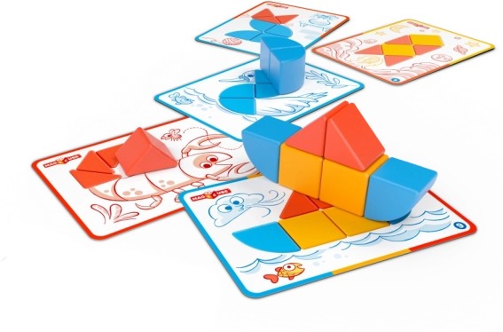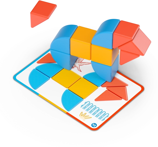 Enthalten sind 6 beidseitig bedruckte Karten mit 12 Aufgaben, die von einfachen Puzzles zu fortgeschritteneren Formen führen und logisches Denken anregen.