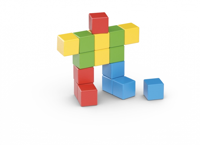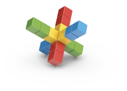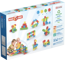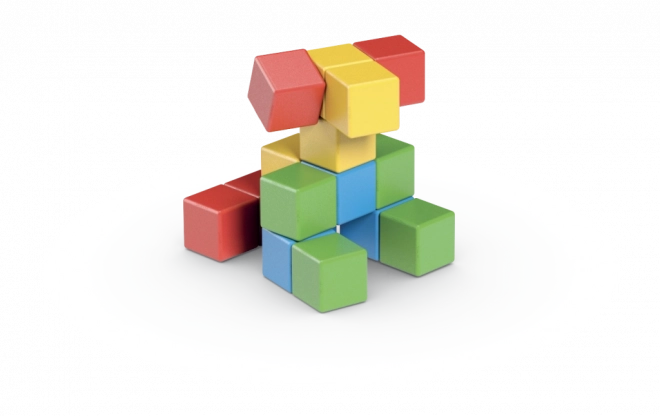 Dank der speziellen inneren Konstruktion ziehen sich die magnetischen Würfel von allen sechs Seiten an und halten sogar frei im Raum – Bauen in 3D. Enthält 16 Würfel in vier Farben. Geeignet ab 1 Jahr.