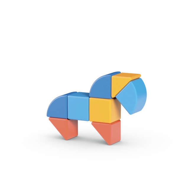Neben magnetischen Würfeln enthält dieses Set auch zwei weitere magnetische Formen. Enthält 9 Teile. Geeignet ab 1 Jahr.