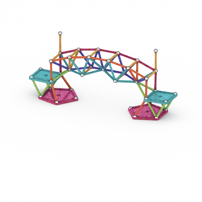 Mit dem Geomag Glitter Baukasten bauen Sie mühelos von einfachen Formen bis hin zu ausgefeilten 3D-Konstruktionen. Farbige Stäbe mit Glitzereffekt in Kombination mit robusten Stahlkugeln und Sockeln ermöglichen stabile und beeindruckende Modelle, die Kinder wie Erwachsene zum Experimentieren motivieren.