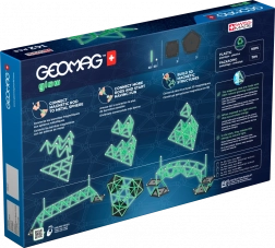 Entdecken Sie die kreative Welt magnetischer Konstruktionen mit dem Geomag Glow, der im Dunkeln leuchtet und die Fantasie von Kindern und Erwachsenen anregt. Dank der Kombination aus leuchtenden Stäben und Stahlkugeln erstellen Sie einfache bis komplexe 2D- und 3D-Modelle, die dank der festen Basen stabil sind.