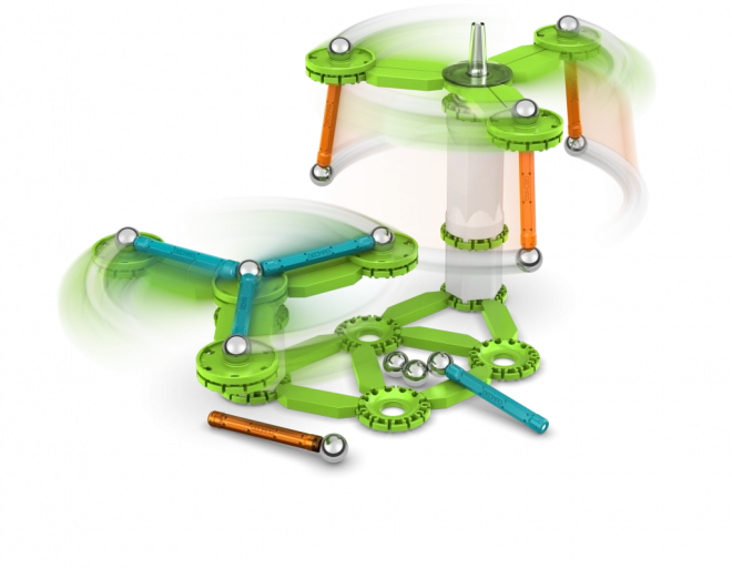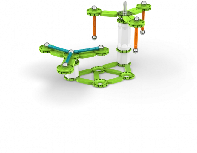 Er fördert logisches Denken, Geduld und Kreativität und erklärt zugleich leicht verständlich die Prinzipien von Rotation, Trägheit und Magnetismus. Mit 96 Teilen lassen sich vielfältige Modelle bauen und mit Geschwindigkeit sowie Stabilität der Rotation experimentieren.