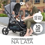 Der Kinderwagen ist für Kinder von Geburt an bis zu 22 kg konzipiert und kann somit bis zu einem Alter von 4 Jahren verwendet werden.