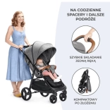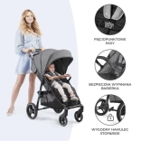 Der Kinderwagen Grande Plus mit einer vollständig flach verstellbaren Rückenlehne und einer stabilen Konstruktion ist ideal für Kinder bis zu einem Gewicht von 22 kg (ca. bis 4 Jahre). Er ermöglicht einfaches einhändiges Zusammenfalten dank des CLICK & FOLD-Systems. Die Vorderräder des Kinderwagens lassen sich leicht blockieren, was die Handhabung auf unebenem Gelände erleichtert, und die zentrale STOP & RIDE-Bremse sorgt für Sicherheit.