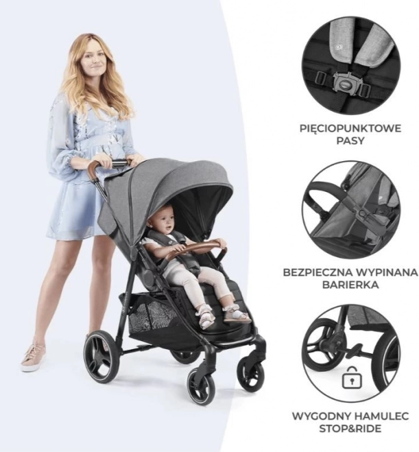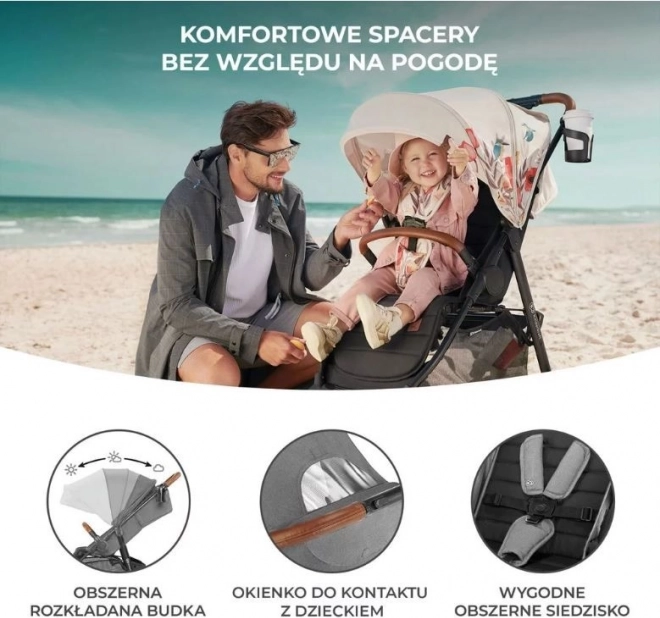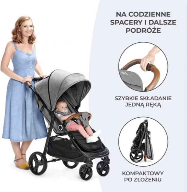 Der Kinderwagen Grande Plus mit einer vollständig flach verstellbaren Rückenlehne und einer stabilen Konstruktion ist ideal für Kinder bis zu einem Gewicht von 22 kg (ca. bis 4 Jahre). Er ermöglicht einfaches einhändiges Zusammenfalten dank des CLICK & FOLD-Systems. Die Vorderräder des Kinderwagens lassen sich leicht blockieren, was die Handhabung auf unebenem Gelände erleichtert, und die zentrale STOP & RIDE-Bremse sorgt für Sicherheit.