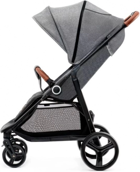 Der Kinderwagen bietet ein großes Verdeck, das für besseren Sonnenschutz weiter ausgezogen werden kann. Der hintere Teil des Verdecks hat eine Tasche für elterliche Bedürfnisse und einen Durchblick in den Kinderwagen für besseren Kontakt mit dem Kind.