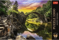 Tauchen Sie ein in die Atmosphäre der untergehenden Sonne über der legendären Rakotzbrücke. Dieses detailreiche Puzzle aus der Photo Odyssey-Kollektion bietet gestochen scharfen Druck, satte Farben und eine realistische Darstellung, die das Puzzeln zu einem visuell fesselnden Erlebnis macht. Die Größe des fertigen Motivs beträgt etwa 68,3 × 48 cm – ideal zum Einrahmen.