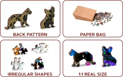 Dieses Puzzle ist beidseitig, was bedeutet, dass es nach dem Bild auf der Vorderseite oder nach dem Muster auf der Rückseite gestaltet werden kann. Das umweltfreundliche Design stellt sicher, dass keine Kunststoffverpackungen verwendet werden, nur Papierbeutel und -boxen.