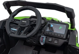 Das Fahrzeug CAN-AM Maverick ist für Dauerhaftigkeit und Sicherheit konzipiert, mit einer robusten Konstruktion und realistischen Details, die von echten Geländefahrzeugen inspiriert sind.