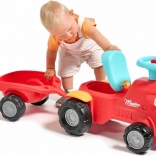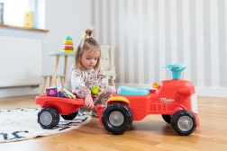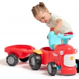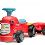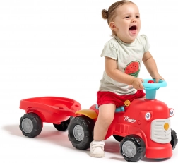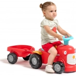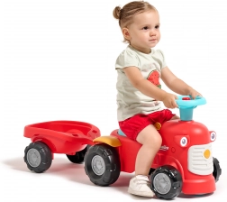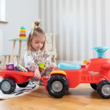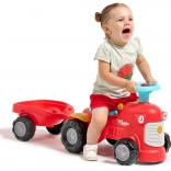 Dieses rote Kinder-Rutschfahrzeug in Traktorform mit abnehmbarem Anhänger ist das ideale erste Fahrzeug für Kleinkinder. Dank der stabilen Konstruktion und einer maximalen Tragfähigkeit von 25 kg ist die Fahrt sicher und bequem. Die drehbare Vorderachse erleichtert das Kurvenfahren, während die Hupe am Lenker jede Ausfahrt noch spannender macht.
