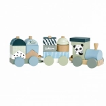 Die sanfte blau-grüne Farbpalette und das liebevolle Panda-Motiv begeistern auf den ersten Blick und regen die kindliche Fantasie beim Spielen und Bauen an.