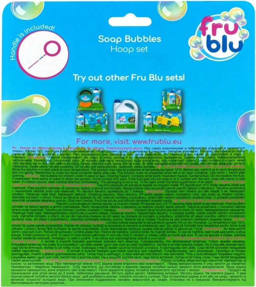 Entdecken Sie das saisonale Highlight – das kompakte FRU BLU Set mit Ring und 0,4 l Lösung. Sie werden die einfache Montage und Aufbewahrung schätzen – ideal für Garten, Park und Urlaub. Gießen Sie die Lösung in eine flache Schale, tauchen Sie den Ring ein und erzeugen Sie mit einer fließenden Bewegung riesige, glänzende Blasen.