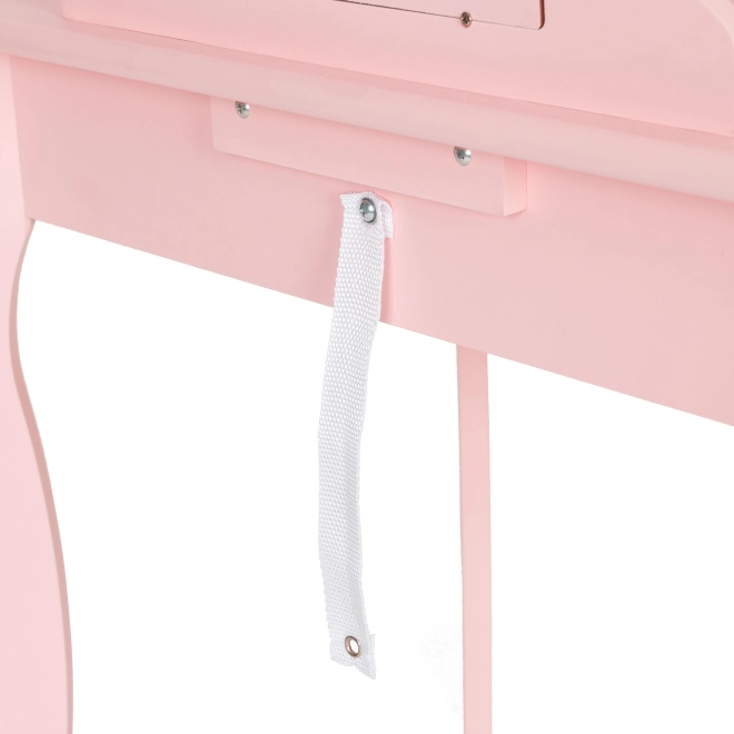 Der bezaubernde rosa Schminktisch für kleine Fashionistas schafft im Kinderzimmer eine eigene Beauty-Ecke. Die große Arbeitsfläche und die Schublade für Schätze, Schmuck und Accessoires halten alles übersichtlich griffbereit, während der große Spiegel mit niedlichem Herzchen dem Set zusätzlichen Charme verleiht.