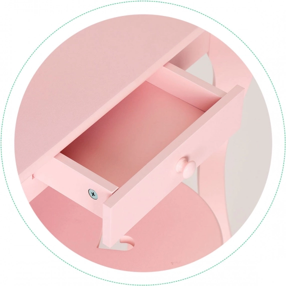 Das Highlight des Tisches ist der großzügige Spiegel mit anmutiger Form und Herzchen, der dem Zimmer Charme verleiht und Kindern ein bequemes Frisieren und Spielen „Beauty-Salon” ermöglicht.