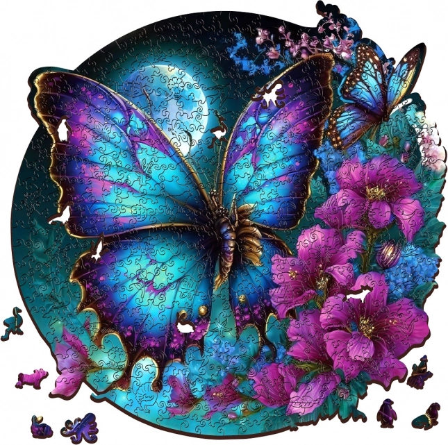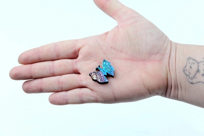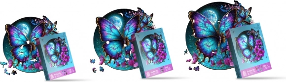 Entdecken Sie die Faszination des Puzzelns mit dem Holzpuzzle im Schmetterlingsmotiv – ein Premium-Puzzle aus FSC®-zertifiziertem Holz mit 5 mm Stärke, mit 500 einzigartigen Teilen, präzise laser­geschnitten und mit leuchtendem UV-Digitaldruck. Genießen Sie Stunden der Entspannung, fördern Sie Logik und Feinmotorik und verwandeln Sie das fertige Werk in eine stylische Wanddekoration – im Set ist alles enthalten.