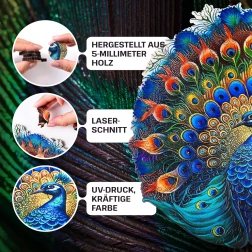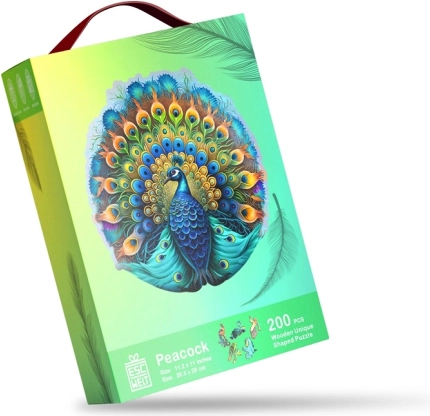 Genießen Sie ein einzigartiges Erlebnis mit dem Holzpuzzle im Pfauenmotiv! Jedes der 200 Teile ist mit einem Laser präzise ausgeschnitten und sorgt für perfekte Genauigkeit und Glätte. Dank der modernen UV-Digitaldrucktechnologie bringt das Puzzle lebhafte und realistische Farben in jedes Stück.