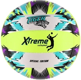 Genießen Sie ein dynamisches Spiel mit dem bunten Volleyball TIGER, der durch hervorragende Sichtbarkeit und einen angenehmen Griff überzeugt. Dank der genähten Konstruktion behält der Ball seine Form und eignet sich für Freizeit- und Trainingseinsätze auf verschiedenen Untergründen.