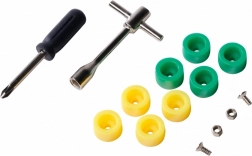 Rampe, Fingerboard, 8 Ersatz-Bushings/Reifen, T-Schlüssel, Schraubendreher, Schrauben mit Muttern