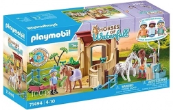 - Ein detaillierter Stall aus der PLAYMOBIL-Serie mit einer PLAYMOBIL-Figur, zwei Ponys, einem Pferdebox mit Waschplatz, Zaunelementen und zahlreichen Pflegezubehör.