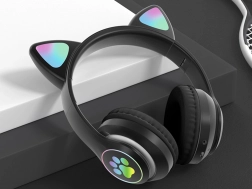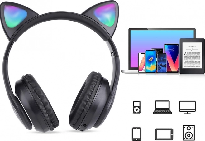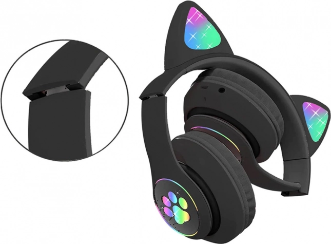 Stylische kabellose Kopfhörer mit Katzenohren und RGB‑LED‑BeleuchtungKomfort, klaren Sound und eine multifunktionale Ausstattung vereinen. Sie unterstützen Bluetooth 5.0, Wiedergabe von microSD, verfügen über FM‑Radio und ein integriertes Mikrofon für Freisprechanrufe. Weiche Ohrpolster und die leichte, faltbare Konstruktion sorgen auch bei längerem Hören für Bequemlichkeit.