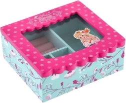 Im Inneren finden Sie praktisch gegliederte Fächer, die Schmuck getrennt und geschützt halten. Dank der robusten Holzkonstruktion und zuverlässigen Scharnieren ist das Kästchen nicht nur hübsch, sondern auch langlebig für den täglichen Gebrauch. Das originelle Design eignet sich sowohl als Geschenkverpackung als auch als Deko fürs Kinderzimmer.