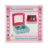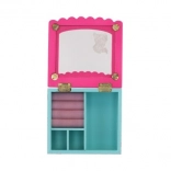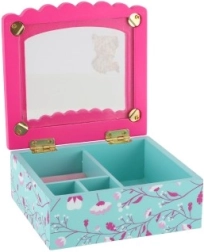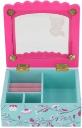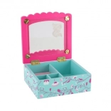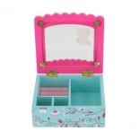 Dieses dekorative Schmuckkästchen aus hochwertigem Holz ist die ideale Lösung für die übersichtliche Aufbewahrung von Ringen, Ohrringen und kleinen Schätzen. Der rosa Deckel mit Glas-/transparenter Einlage und der innenliegende Spiegel erleichtern die schnelle Auswahl der Accessoires, während der türkise Unterteil mit zartem Blumenmuster dem Interieur einen zauberhaften Akzent verleiht.