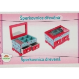 Dieses stilvolle Schmuckkästchen aus Holz vereint charmante Optik und funktionale Aufteilung. Der obere Deckel mit Spiegel lässt sich leicht aufklappen und gibt durchdachte Fächer für Ringe, Ohrringe und kleine Accessoires frei. Zwei separate Schubladen bieten zusätzlichen Platz für die übersichtliche Aufbewahrung von Schätzen.