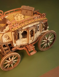 Das stilvolle 3D-Puzzle einer Spieluhr in Form einer historischen Postkutsche vereint den Charme des 19. Jahrhunderts mit einem modernen DIY-Erlebnis. Nach dem Zusammenbau bewegt es sich dank eines präzisen mechanischen Uhrwerks – einfach die Feder aufziehen und die sanfte Bewegung sowie die Musik genießen. Die Vorderräder verfügen über eine Lenkfunktion, wodurch das Modell noch realistischer wirkt.