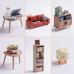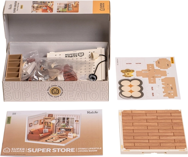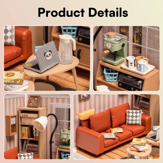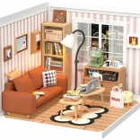 Dieser kreative Bausatz bietet ein realistisch gestaltetes Interieur mit Couch, Bücherregal, Couchtisch und Stehlampe. Nach dem Aufbau dient er als stilvolle Dekoration fürs Arbeitszimmer, Wohnzimmer oder Kinderzimmer. Die LED-Beleuchtung sorgt für eine angenehme Atmosphäre und hebt die präzisen Details hervor.