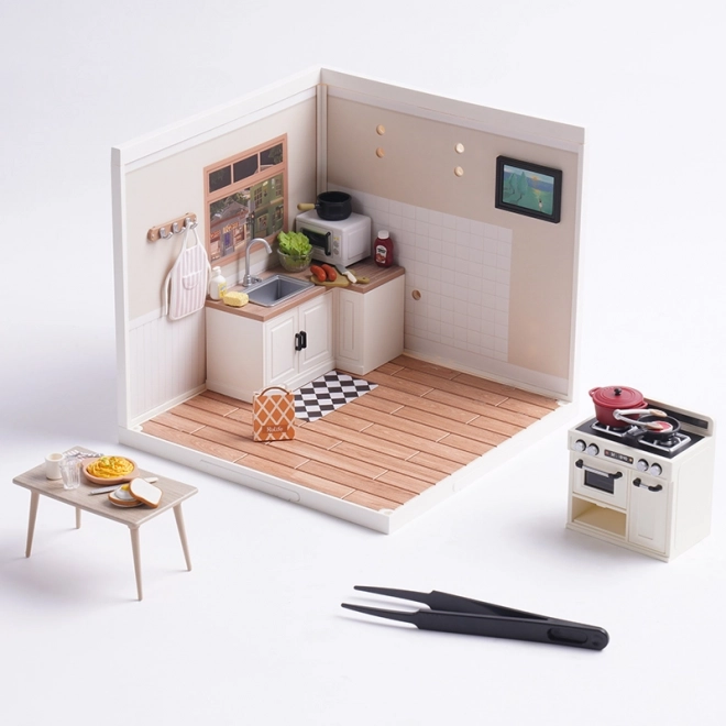 Entdecken Sie die Welt der detailreichen ROBOTIME-Miniaturen und gestalten Sie eine behagliche Küche in gedeckten Farben. Das Modell umfasst Herd, Schränke, Essmöbel und kleine Accessoires, die natürlich und authentisch wirken. Dank der LED-Beleuchtung kommt jedes Detail zur Geltung und Ihr Werk wird zum Blickfang auf Regal oder Schreibtisch.
