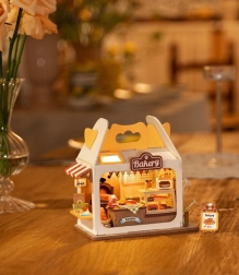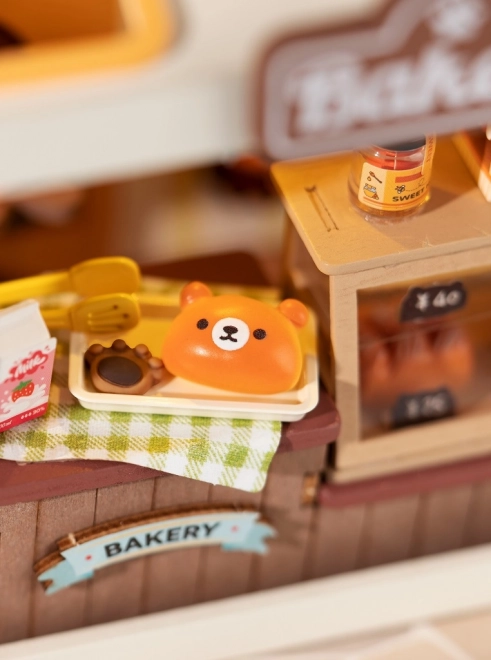Die Bärenbäckerei ist eine bezaubernde Miniatur für alle, die Kreativität und Design lieben. Der Bausatz enthält alles Nötige für den Zusammenbau, inklusive Kleber und Werkzeugen – eine Schere genügt. Mit der LED-Beleuchtung verwandelt sich die Bäckerei in ein warmes, gemütliches Licht, das jedes Detail der Vitrinen, Schilder und Backwaren betont.
